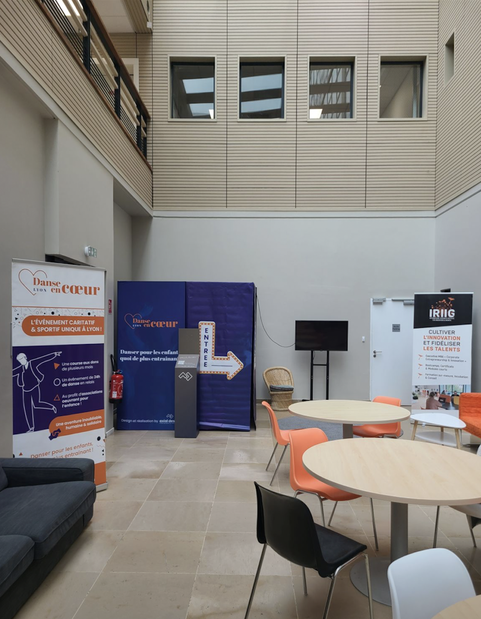 La plus petite boîte de nuit du monde a posé ses valises au sein de l'école IRIIG... et a fait danser les étudiants la semaine du 14 octobre dernier. Une belle occasion de plonger dans l'univers de Danse en Coeur, soutenu par IRIIG depuis la première édition. Entre deux cours, une pause café ou une réunion, nombreux sont ceux qui ont pu profiter de cette mini boîte de nuit pour bouger, échanger et partager un moment de convivialité. Merci encore à IRIIG pour son accueil chaleureux, son enthousiasme et son implication au sein de la famille en coeur.
